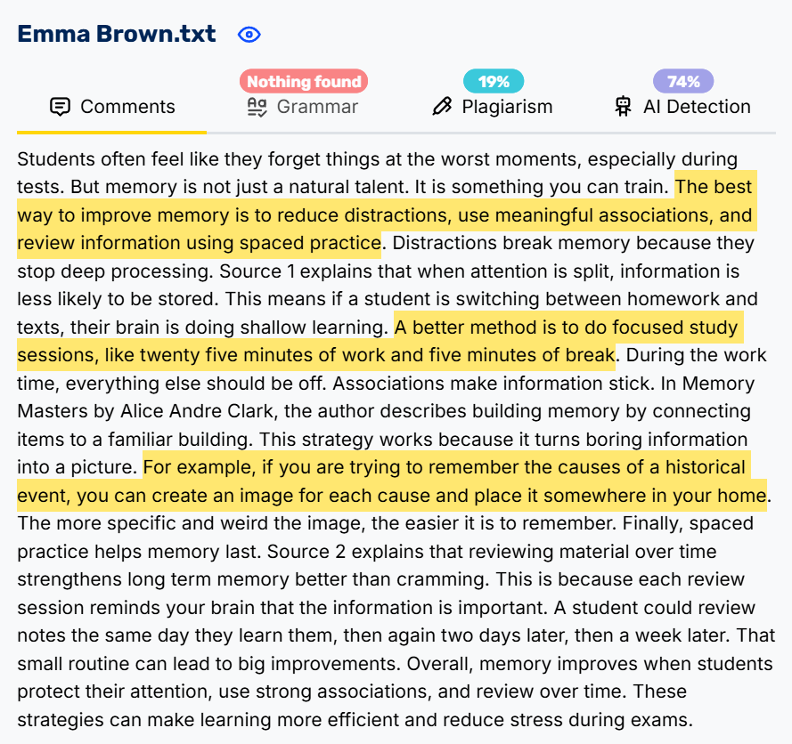 - Detects potential academic integrity issues efficiently, helping uphold educational standards